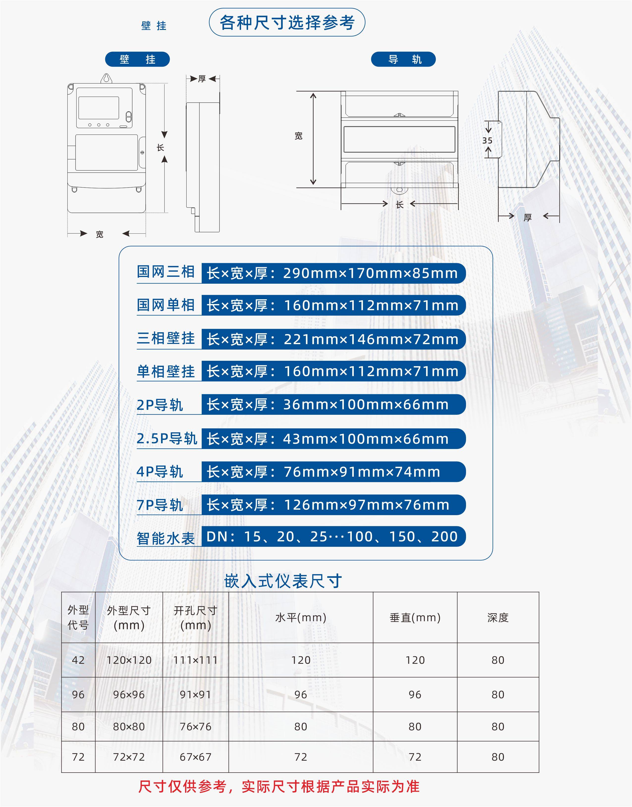 多功能电力仪表,一种具有可编程测量、显示、RS485数字通讯和电能脉冲输出的多功能智能电力仪表,能够完成三相电参量测量(三相电压、三相电流、有功功率、无功功率、视在功率、功率因数、频率等)、谐波测量、电网质量分析(电压波峰系数,电流K系数,电话波形因子,电压电流不平衡度,电压电流序量等)、四象限电能计量、复费率电能计量、最大需量记录、SOE事件记录、数据显示、采集及传输,可广泛应用变电站自动化、配电自动化、智能建筑、企业内部的电能测量、管理、考核。测量精度0.5级,实现LCD现场显示和远程RS-485数字接口通讯,采用标准DL/T 645-2007或MODBUS-RTU通讯协议。