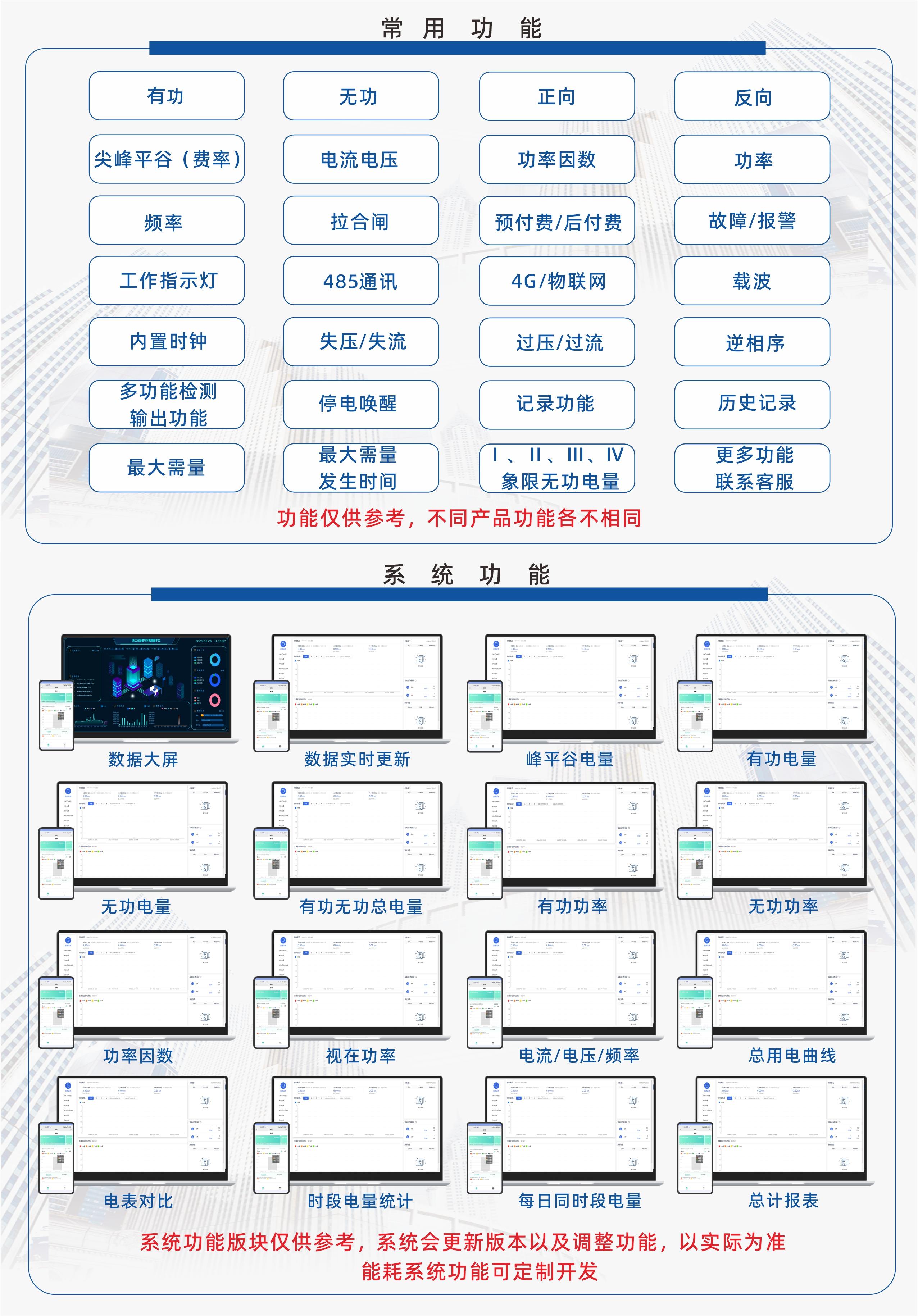 本公司集多年电表设计经验,推出新型智能电表,可选RS485、NB-LOT(5G)、4G、WIFI、蓝牙、ROLA、载波等方式通讯。该系列仪表具有体积小、精度高、可靠性好、安装方便等优点,性能指标符合国标GB/T17215、GB/17883的各项技术要求。