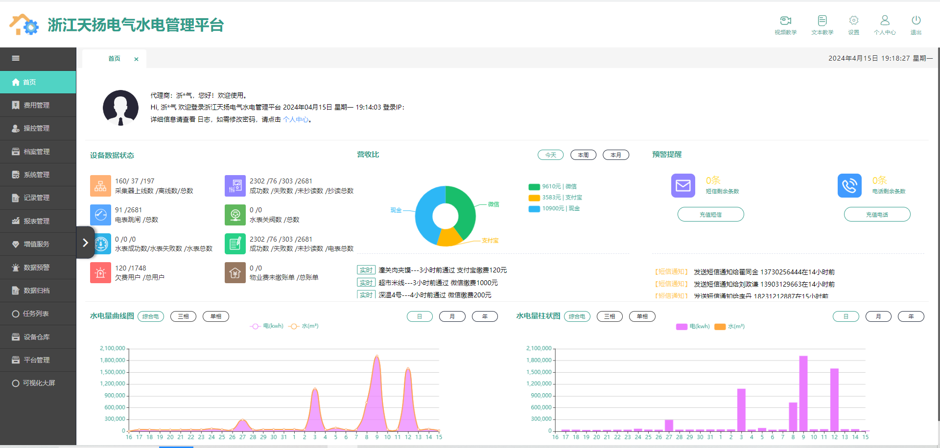 5. 报表管理:水电量报表、扣费明细