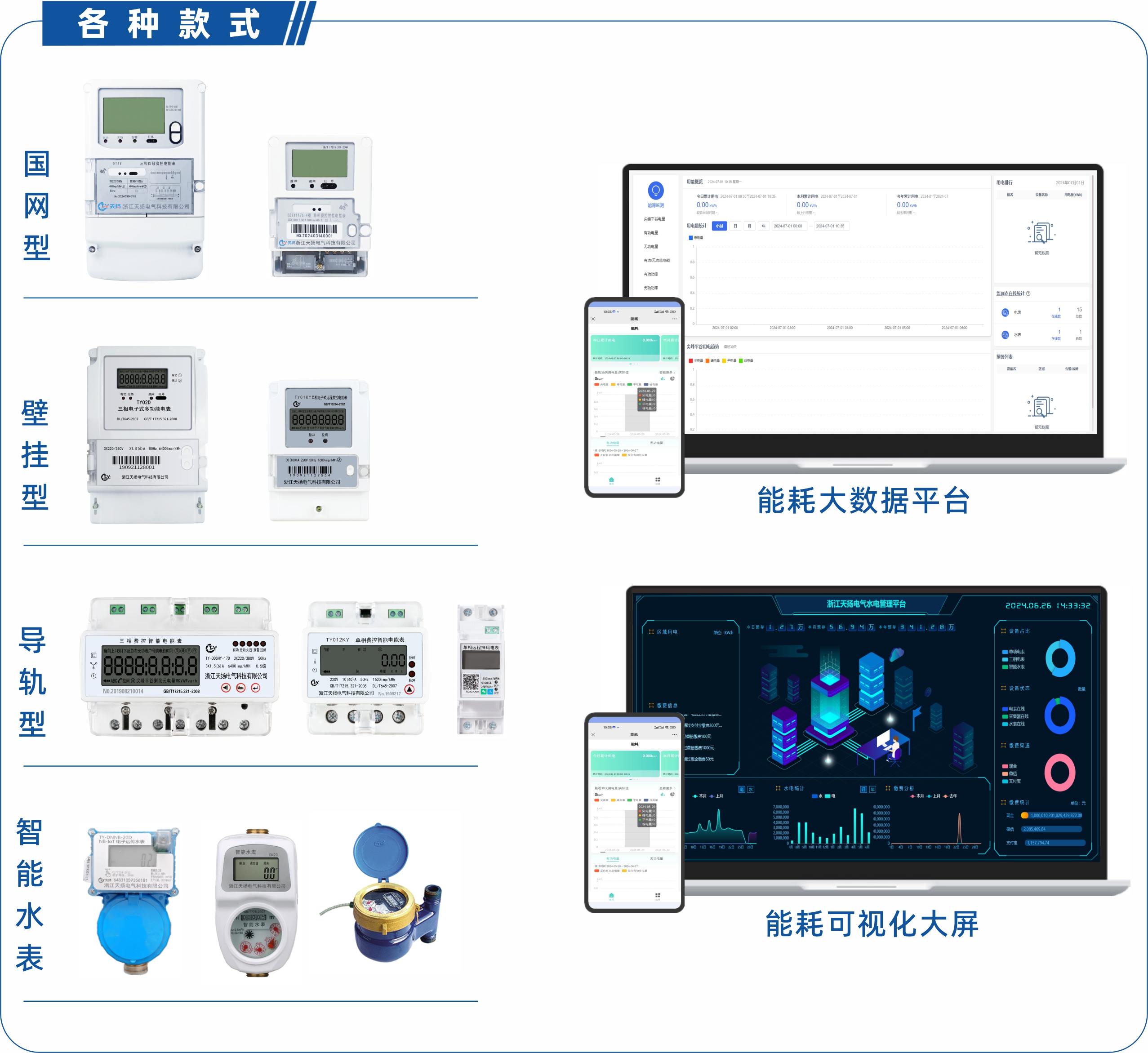 本公司集多年电表设计经验,推出新型智能电表,可选RS485、NB-LOT(5G)、4G、WIFI、蓝牙、ROLA、载波等方式通讯。该系列仪表具有体积小、精度高、可靠性好、安装方便等优点,性能指标符合国标GB/T17215、GB/17883的各项技术要求。